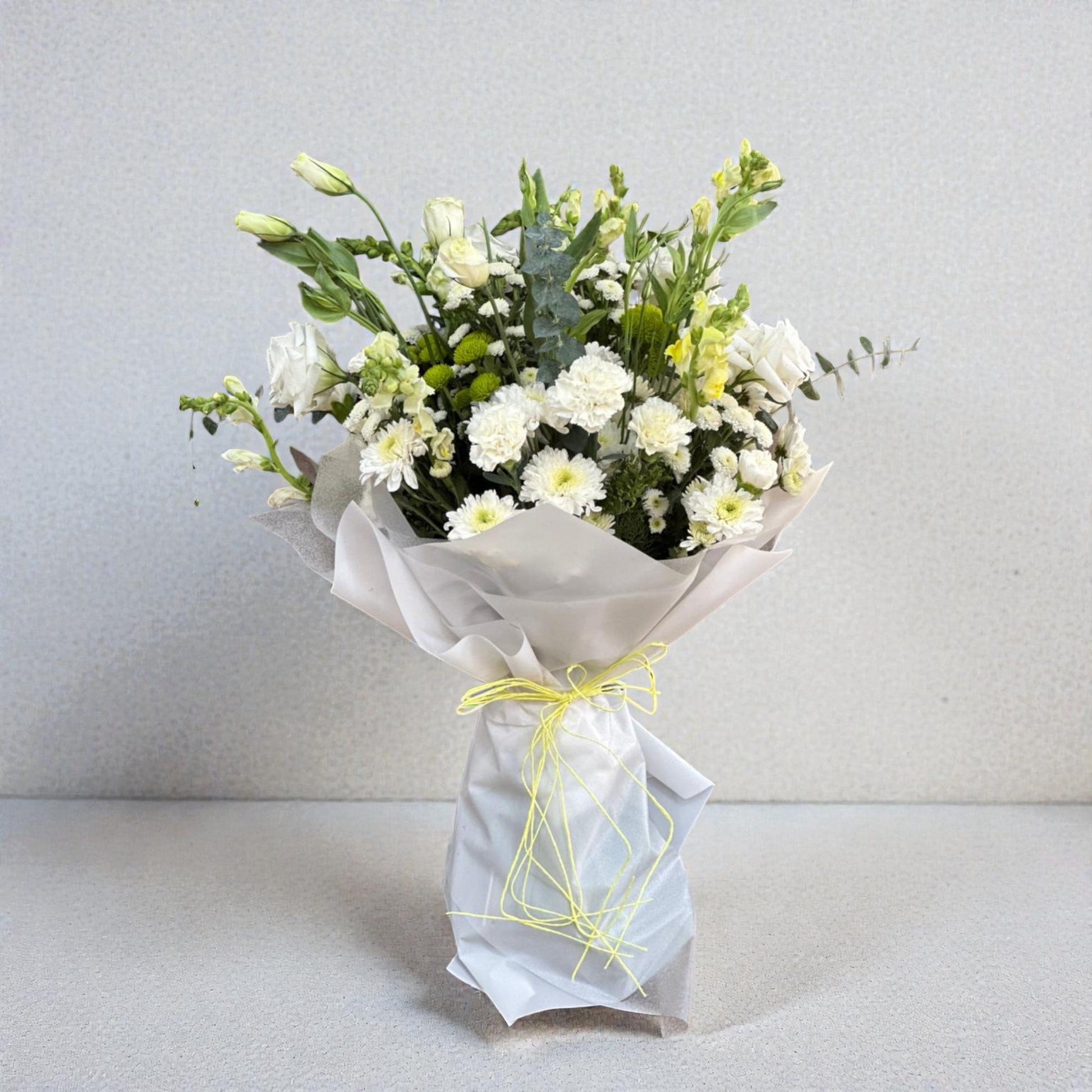 Forever is your bouquet of everlasting charm! With a lineup of fabulous white blooms, this floral wonder is like a bouquet that never quits (kind of like that friend who overstays their welcome, but in a good way)! Perfect for sprucing up your space or making someone's day brighter. Just remember: flowers, like good jokes, depend on the season! 🌸